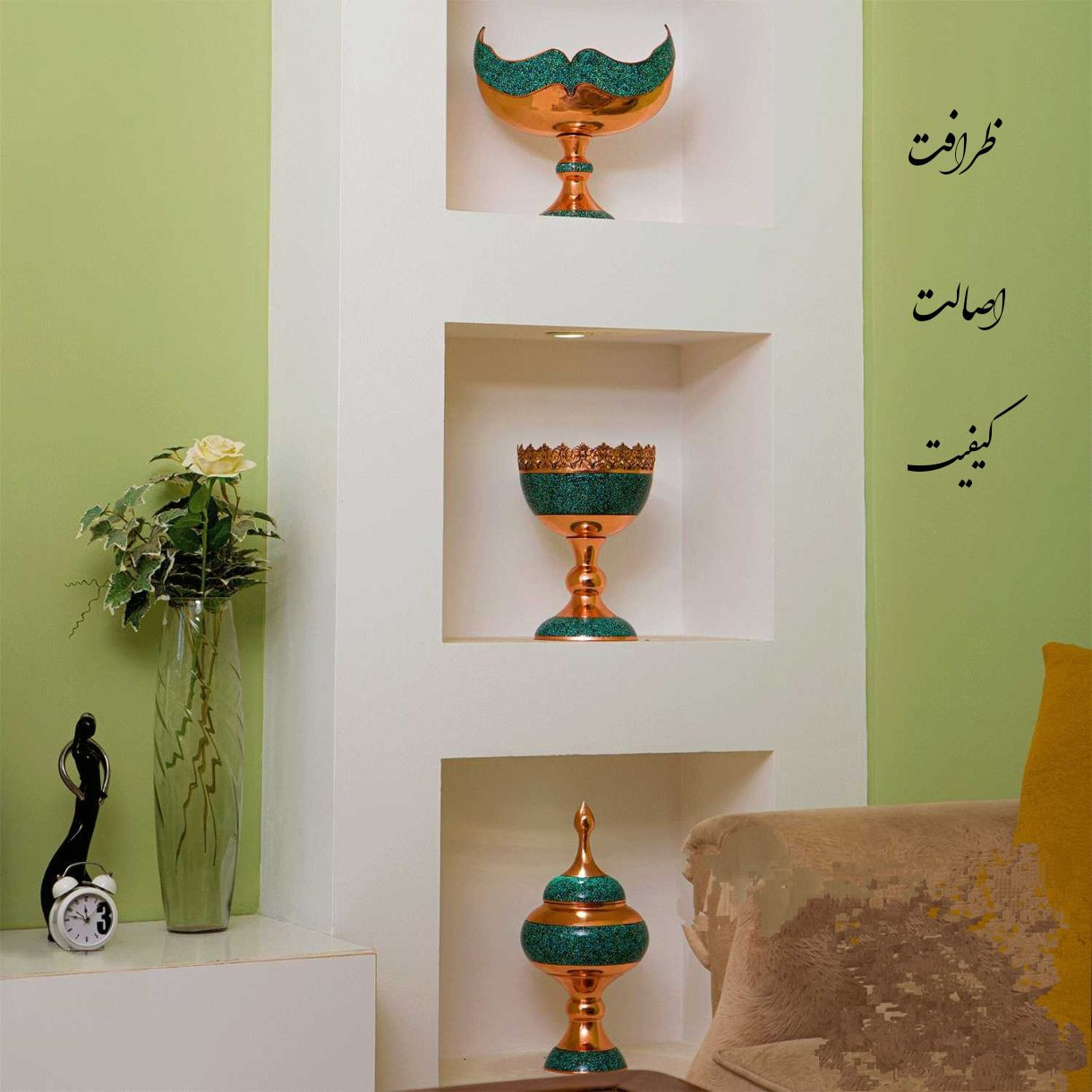ست گلدان 20 و شکلات خوری 25 مس و خاتم گز خوری یا قندان پایه دار ست سه تکه مس و خاتم صنایع دستی۶٬۵۰۰٬۰۰۰ 7%