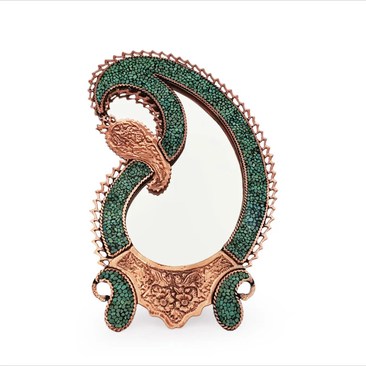 آینه بته جغه فیروزه کوبی نیشابور و قلم زنی شده متوسط 40 سانتی صنایع دستی سایروس