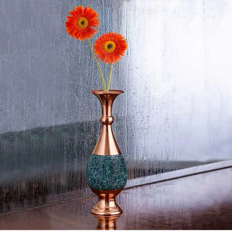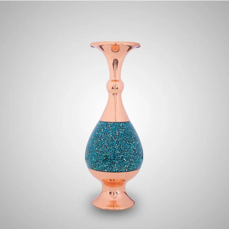 گلدان 25 فیروزه کوبی نیشابور مسی صنایع دستی سایروس 25 سانتی