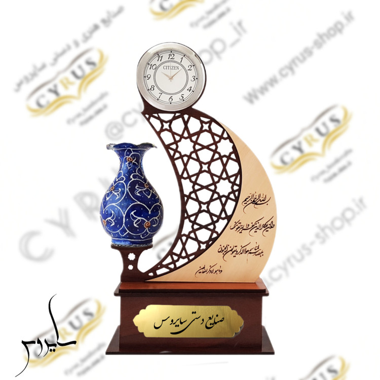 تندیس و هدیه مینا کاری ساعت دار رو میزی و تندیس دکوری صنایع دستی سایروس