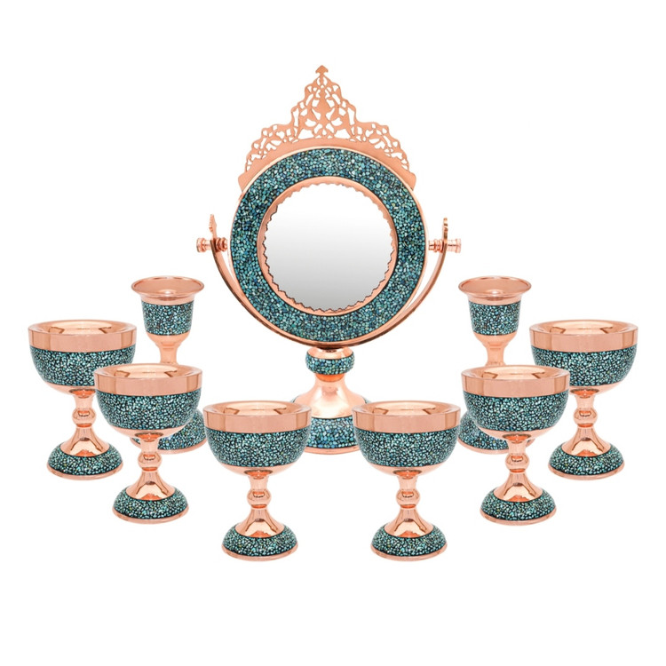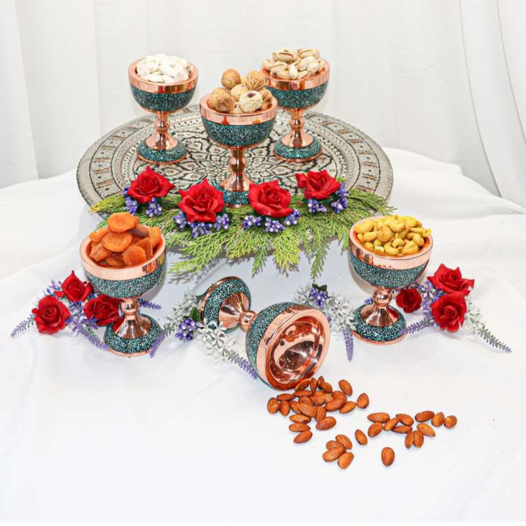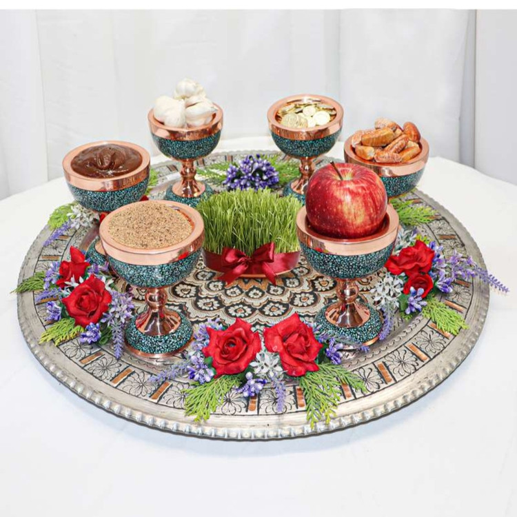 ست هفت سین فیروزه کوبی نیشابور هفت سین عید نوروز مس و فیروزه کوبی هفت سین صنایع دستی سایروس سین عید