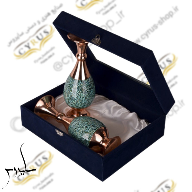 جعبه هدیه جفت گلدان فیروزه کوبی 20 سانتی گلدان فیروزه کوبی و جعبه جیر صنایع دستی سایروس