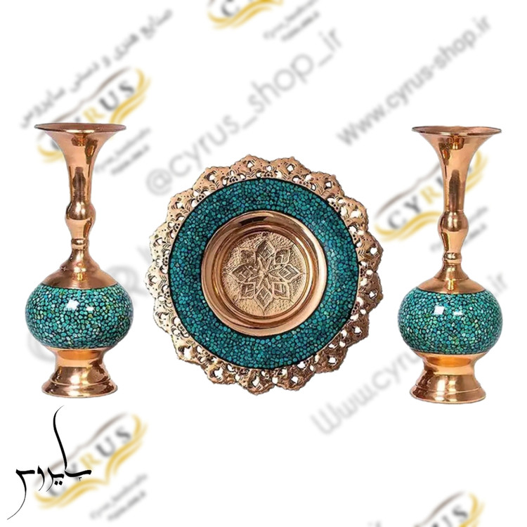 اندازه: 20 سانت ارتفاع گلدان ها و 20 سانت قطر بشقاب