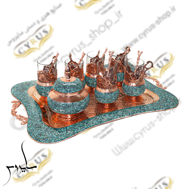 اندازه: 15 سانت ارتفاع قندان 12 سانت ارتفاع گالش بدون لیوان و سینی 45 در 27 سانت سینی