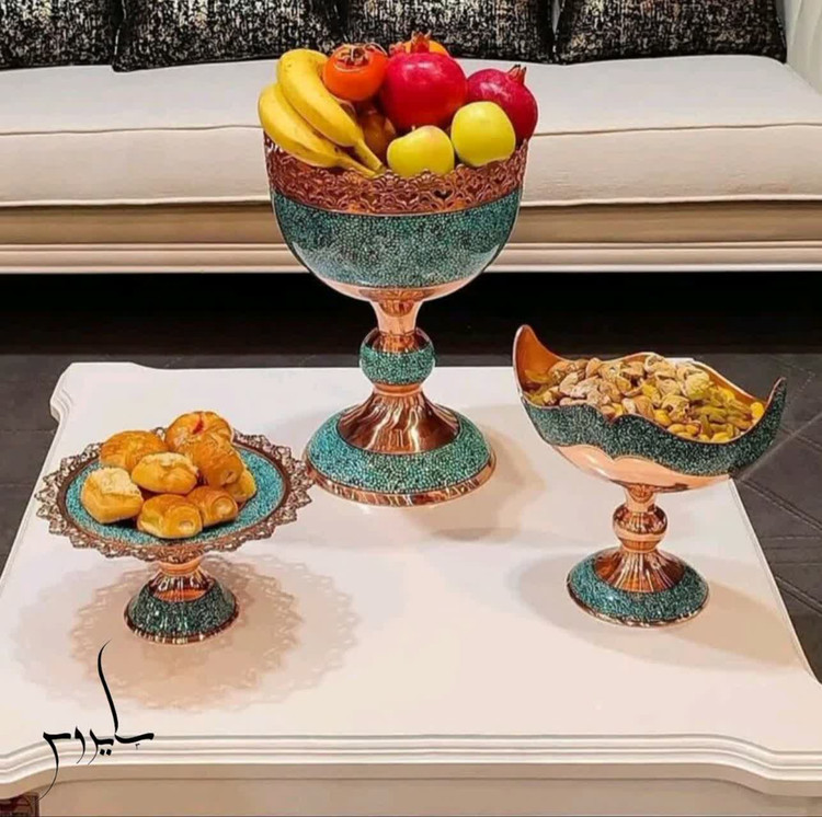 اندازه: کشکول 25 سانت ارتفاع و آجیل خوری 25 سانت ارتفاع و شیرینی خوری قطر 22