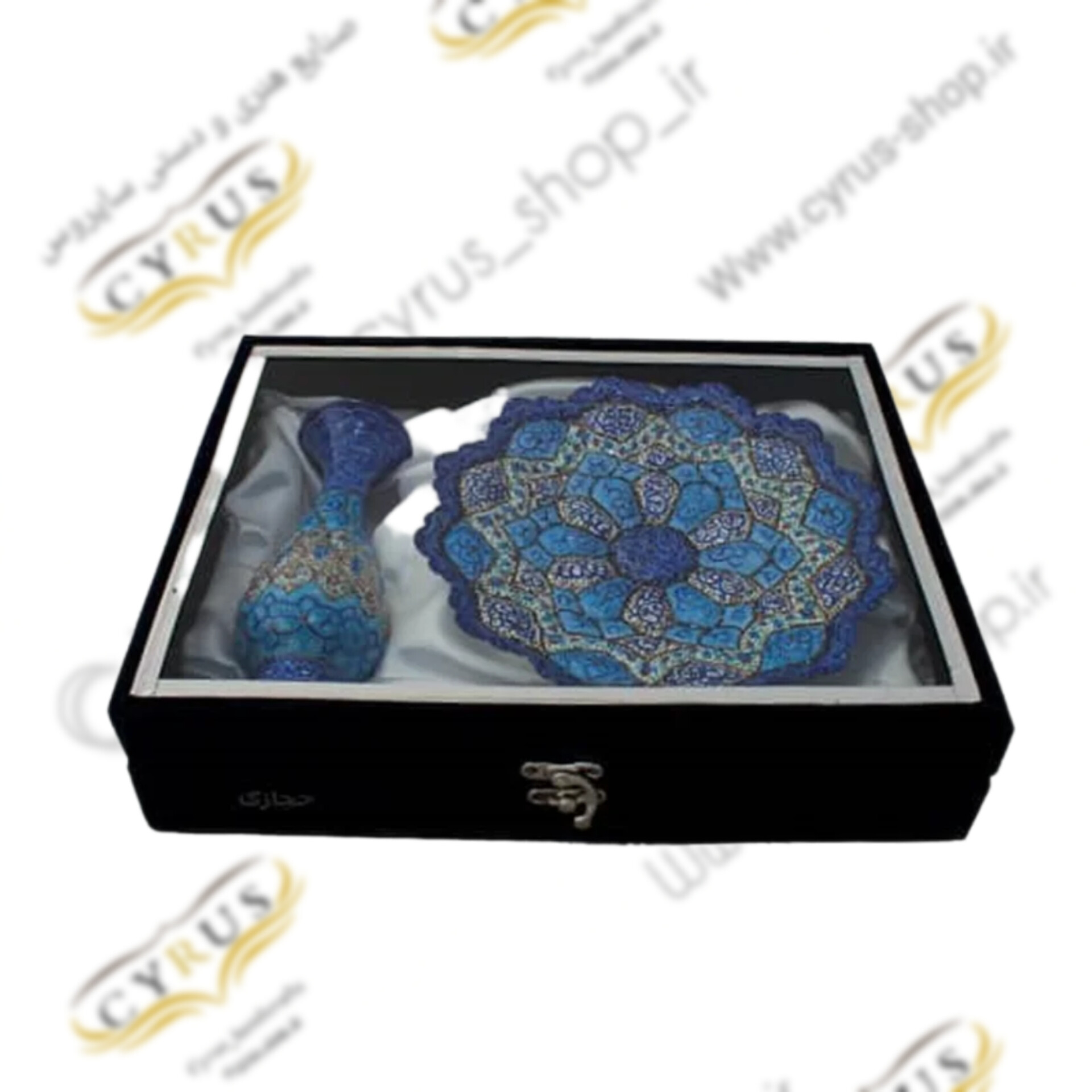 هدیه صنایع دستی اقتصادی سایروس ست گلدان و بشقاب مینا کاری کوچک